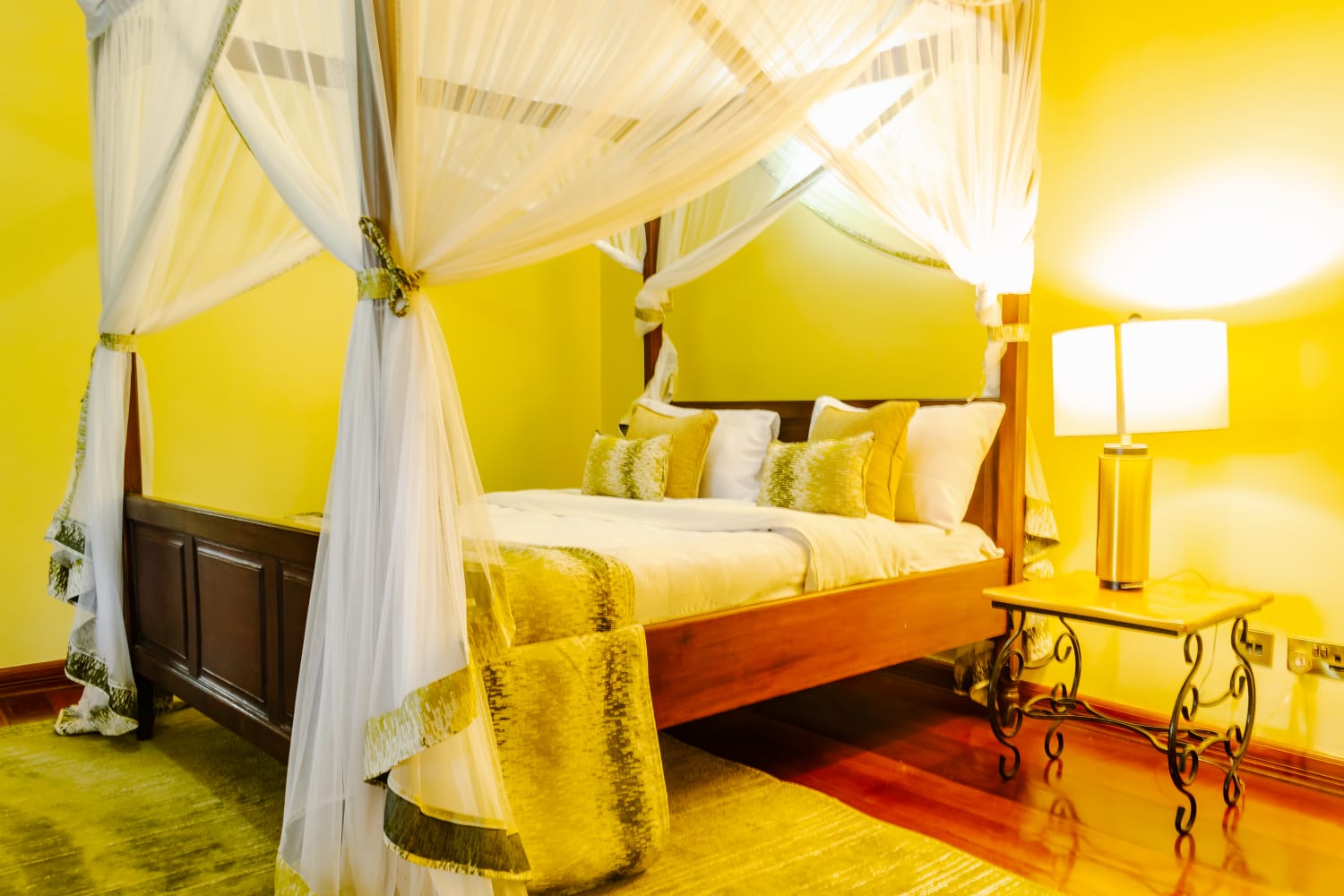 - Centerpiece: A plush queen-sized bed dressed in fine linens